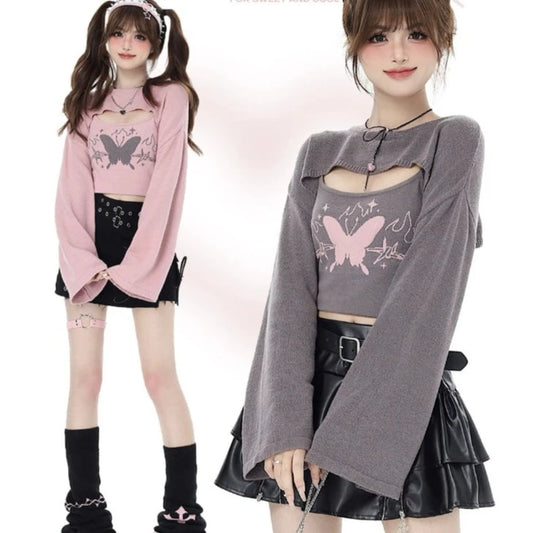 Butterfly Goth Pink Layered Crop Top